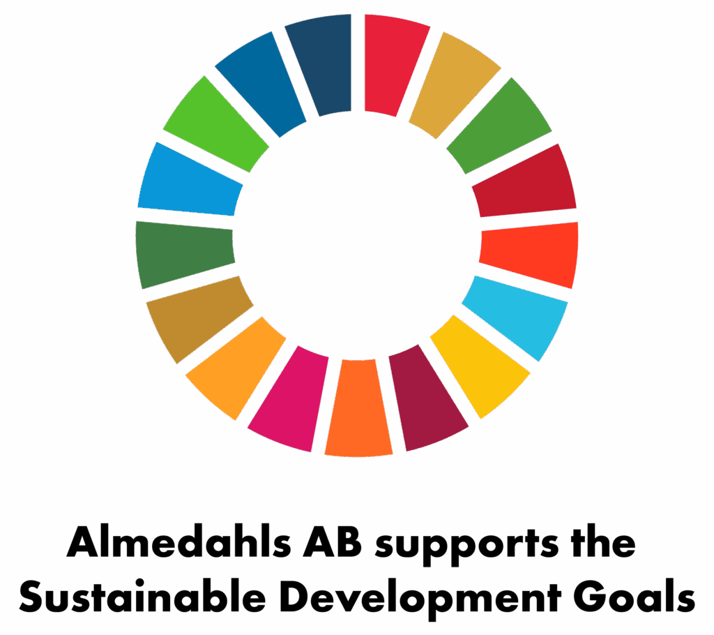 Since 2015, Almedahls has operated CO₂-neutral production powered entirely by renewable, fossil-free energy. While many in the industry are still on their way to decarbonisation, we are already operating beyond the goals set by the European Commission’s 2030 Agenda.