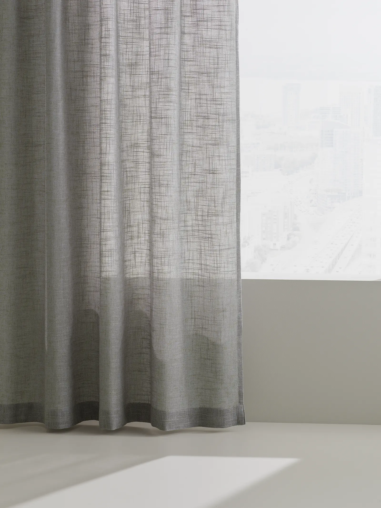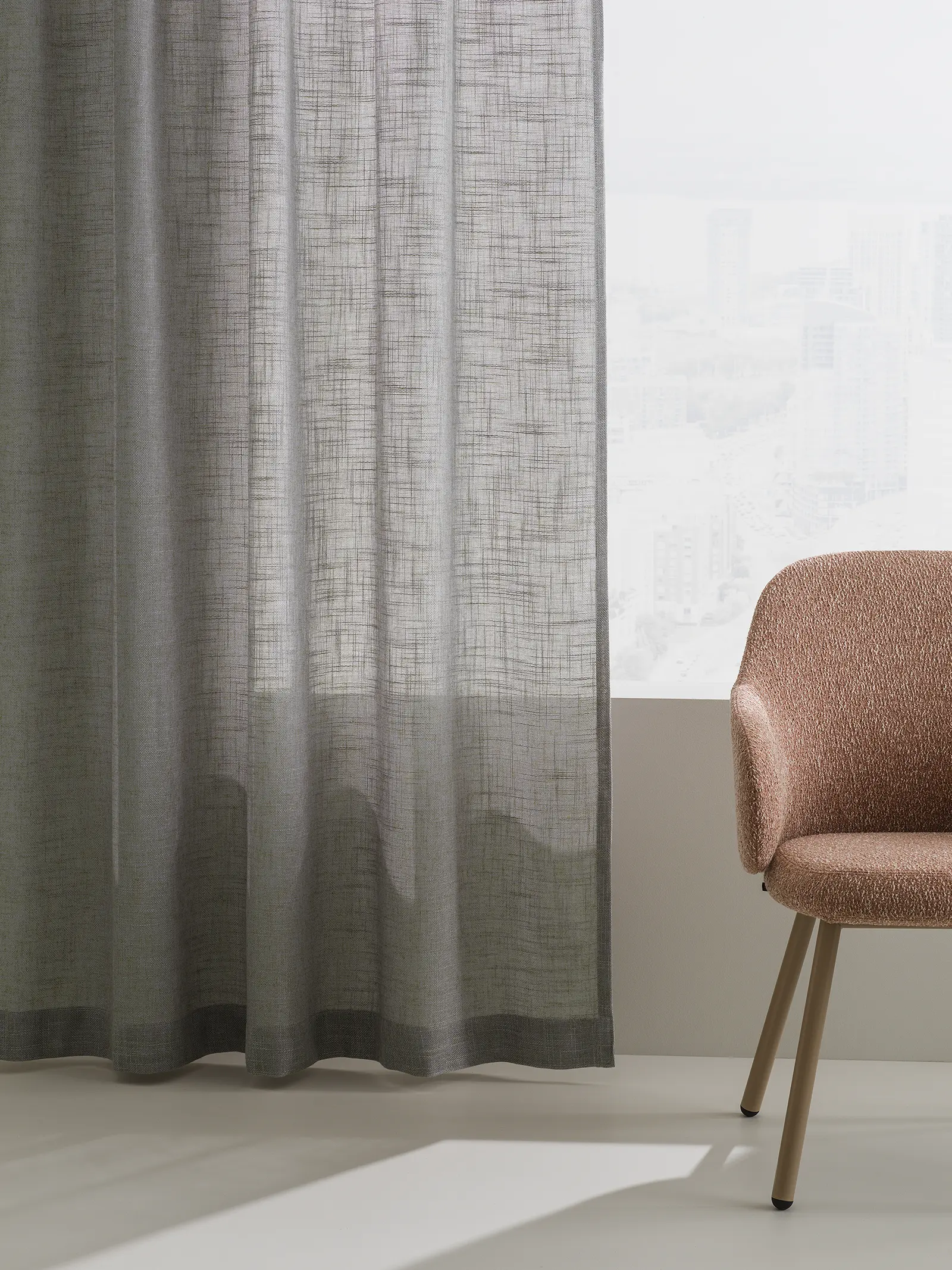 Harvest has a coarse texture with a raw and natural feel. It is woven with a linen-look yarn featuring a discreet mélange effect. The open structure lets the light in while still providing privacy. The natural texture adds character and warmth to the surroundings. The fabric is 330 cm wide, drapes beautifully, and works perfectly for large-scale seamless applications. The colour palette consists of light and muted, slightly tinted neutrals, making it easy to adapt to many environments.
