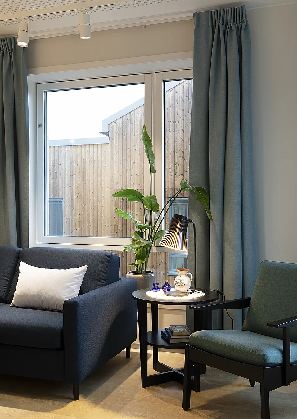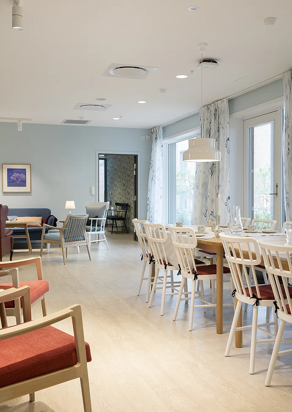 En lugn vårdmiljö i Bærum, utformad för att underlätta vardagen för personer med demens. Vi levererade gardintyger som syddes till skräddarsydda textilier som underlättar orienteringen och bidrar till en trygg och överskådlig miljö.