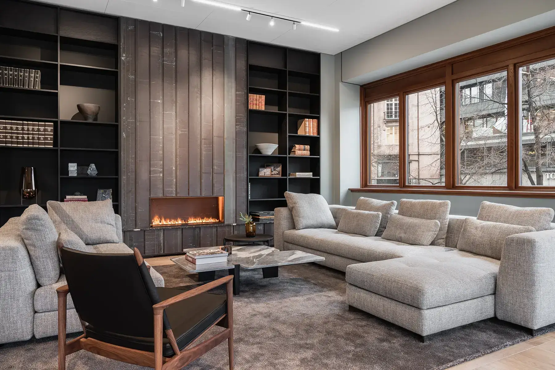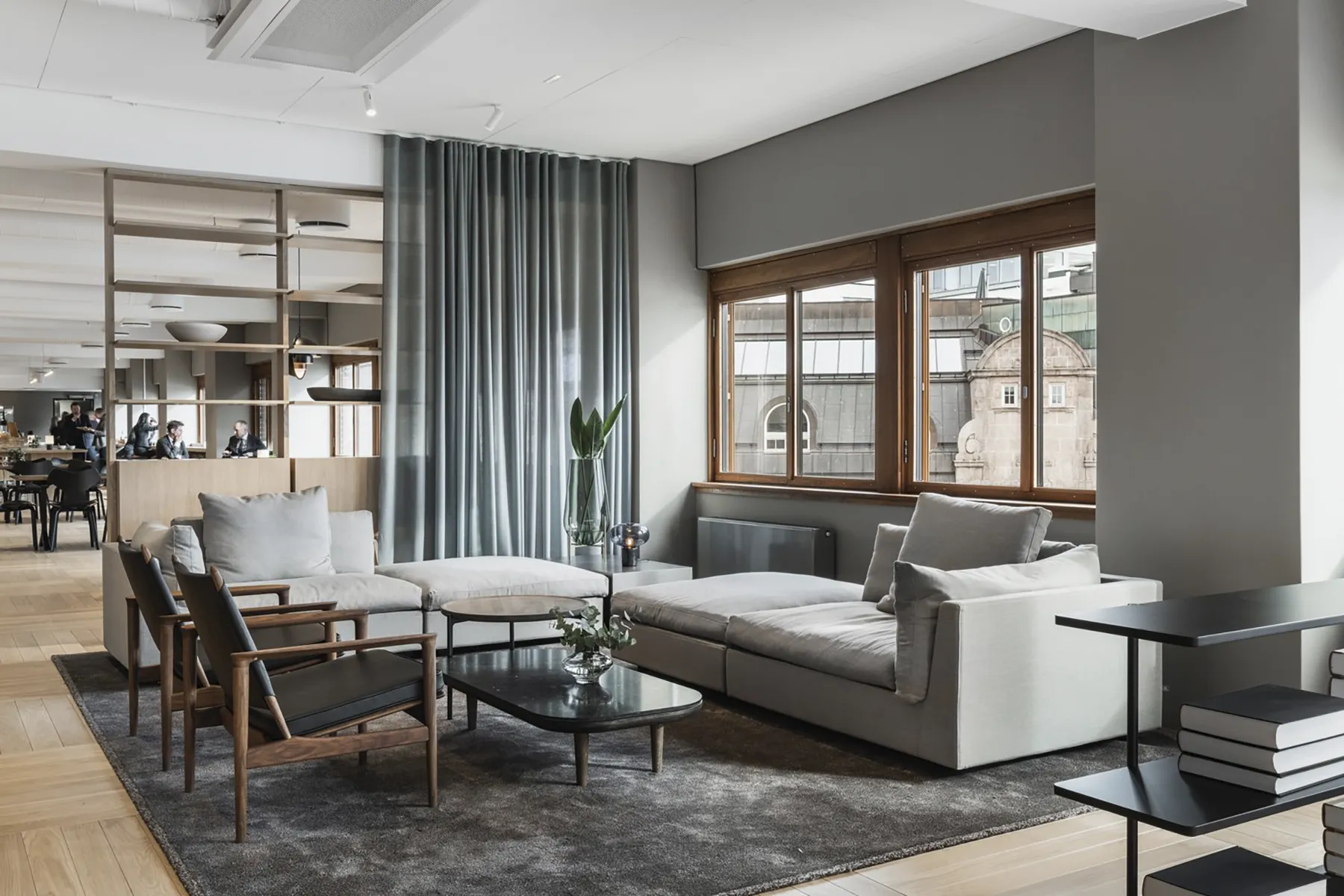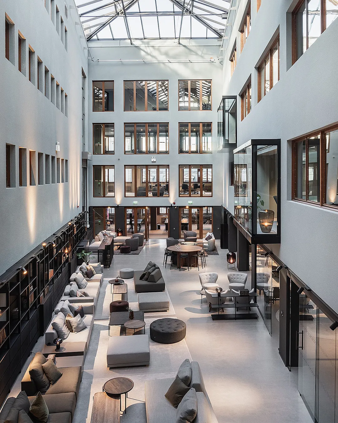 En arbetsmiljö som utvecklats i nära samarbete med arkitekten, där materialvalen förstärker den arkitektoniska strukturen. Vi levererade specialanpassade mattor som dimensionerats och placerats ut för att ge struktur åt stora öppna ytor och avgränsa olika funktionsområden.